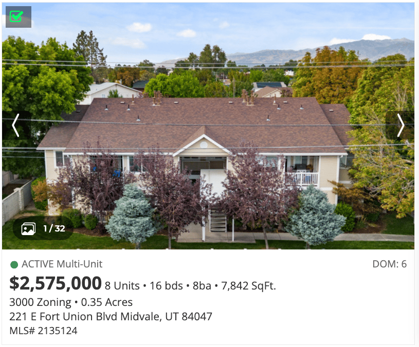 Rare 8-Plex Investment Gem! An amazing opportunity that truly embodies "Location, Location, Location." The property makes it easy to attract and keep quality tenants. Each unit features 2 bedrooms, 1 Jack & Jill bath, a spacious living room, large kitchen, laundry room, and patio storage. Property offers open green space and covered parking. Close to all the city has to offer, including ski resorts, schools, parks, shopping, dining and public transit.