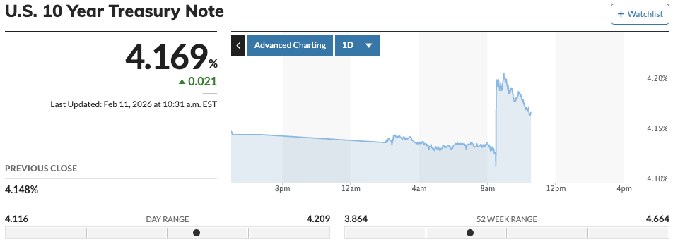 10-Year Treasury Yield (as of Feb 11, 2026)